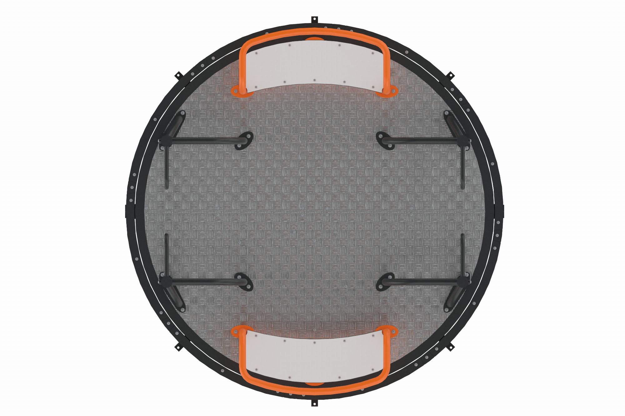 The structure uses ST 37 steel with a three-stage coating process. This includes sandblasting, zinc primer, and electrostatic powder coating for strong corrosion resistance. The platform uses patterned aluminum with a non-slip surface. HPL panels add smooth, rounded edges for safe contact. These materials perform well in high-use outdoor environments.